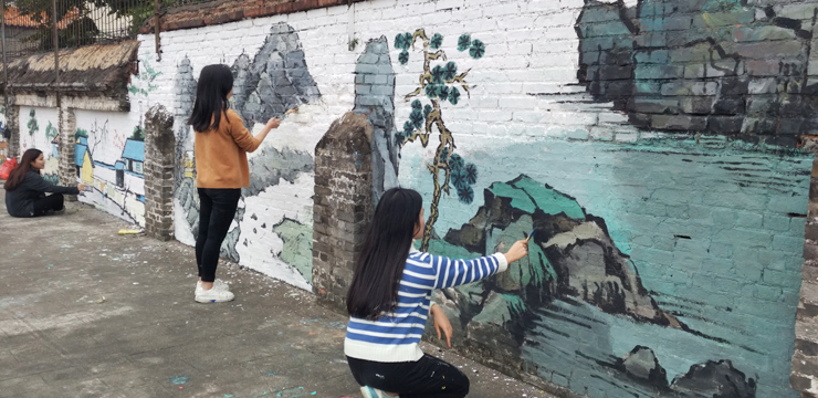 “绘制墙画的过程中,我们需要思索在艺术创作过程中如何为人民服务。”胡荣奎如是说。墙绘在创文工作中发挥着传播传统文化、提升民众修养的作用,故而墙绘内容需要接地气,老少皆可观赏。如何将墙绘作品与本地风情相融合,是胡荣奎和他的团队首先要接受的挑战。